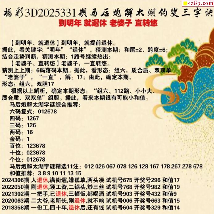 马后炮解25年331期3d太湖钓叟之 老婆子