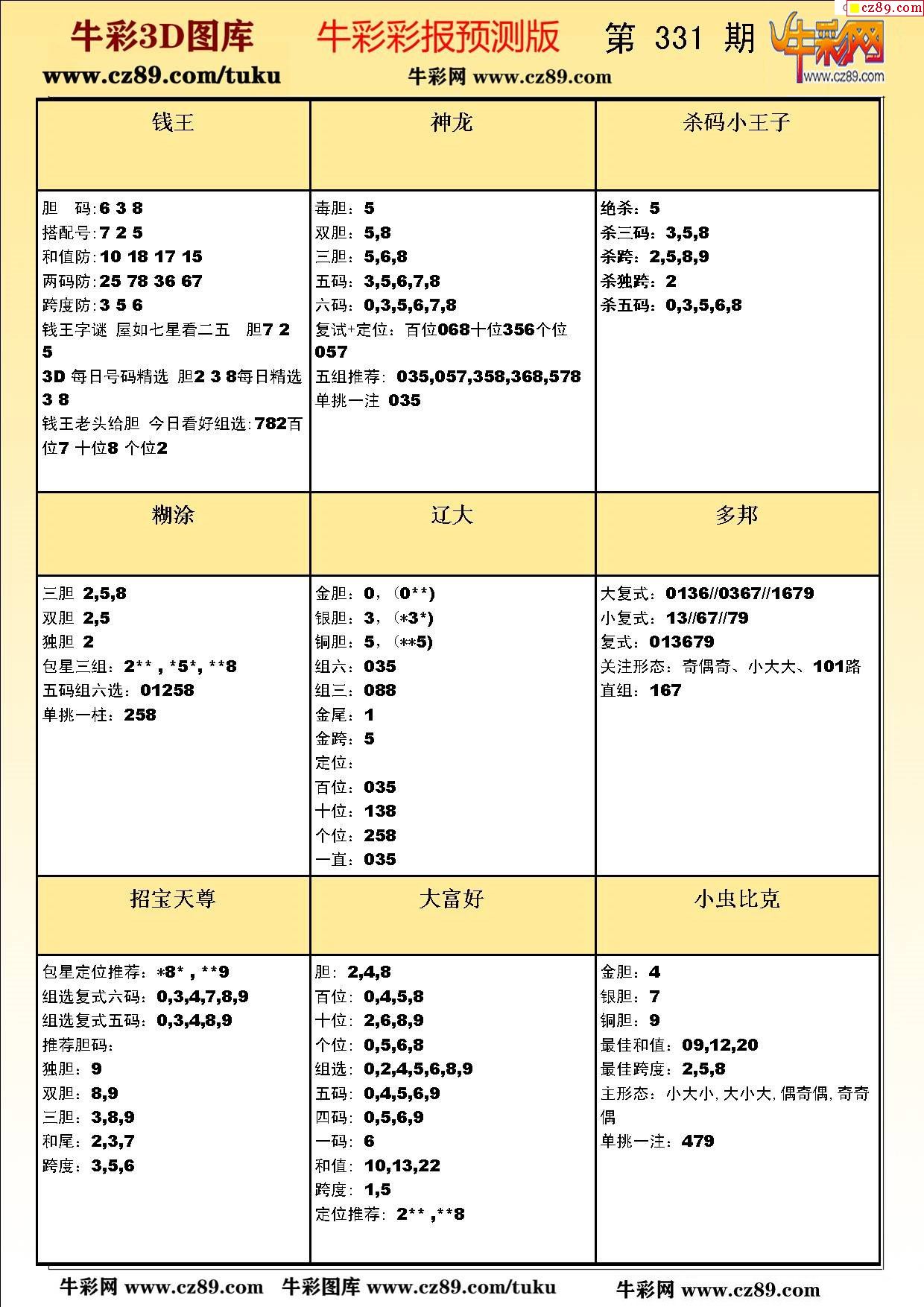 福彩3D2025331期 祁连牧哥百财纳福胆码图谜推荐