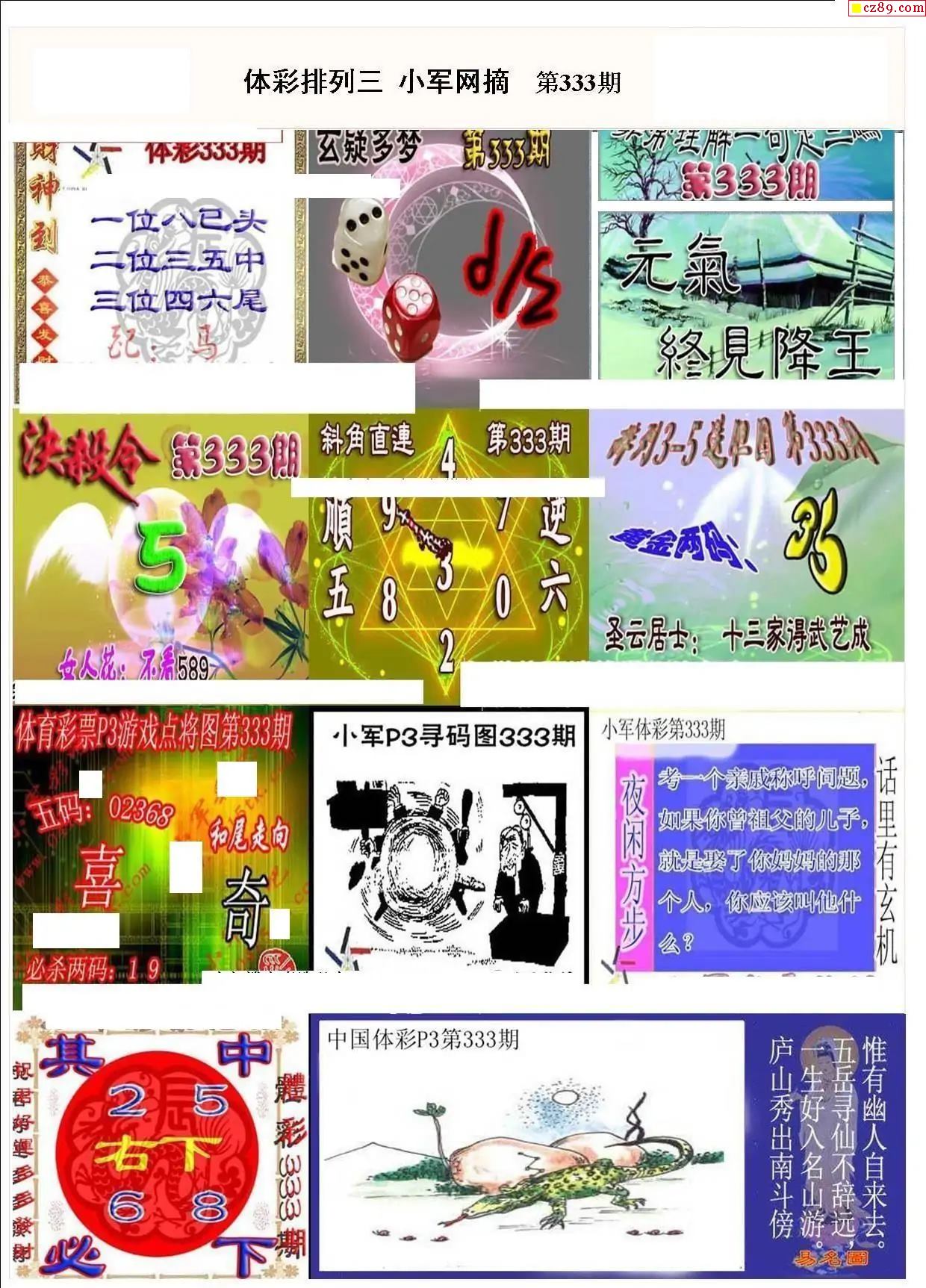 2025年333期牛彩网体彩P3画迷图谜汇总分享