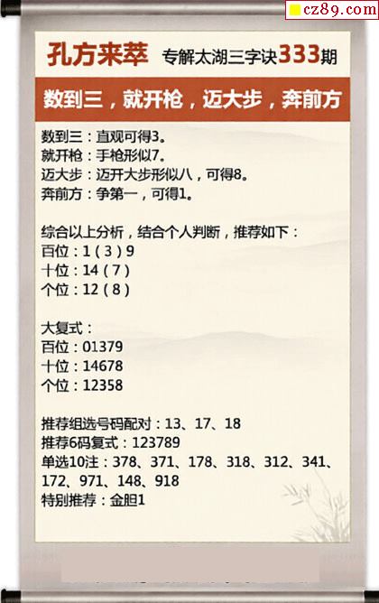 小花猫解25年333期太湖字谜 数到三 就开枪