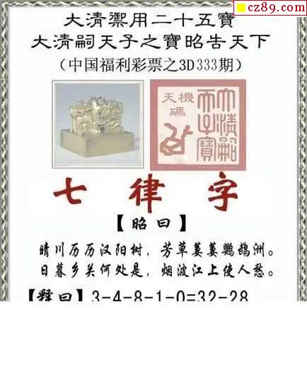 天宇多字和值谜2025333期3d图谜