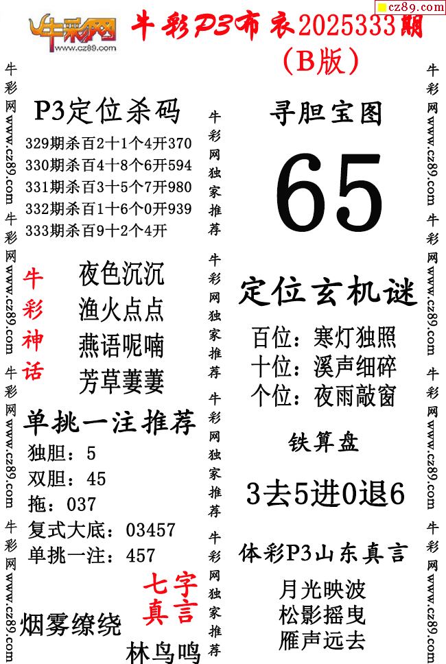 牛彩P3布衣25年333期AB版图谜(精华版)