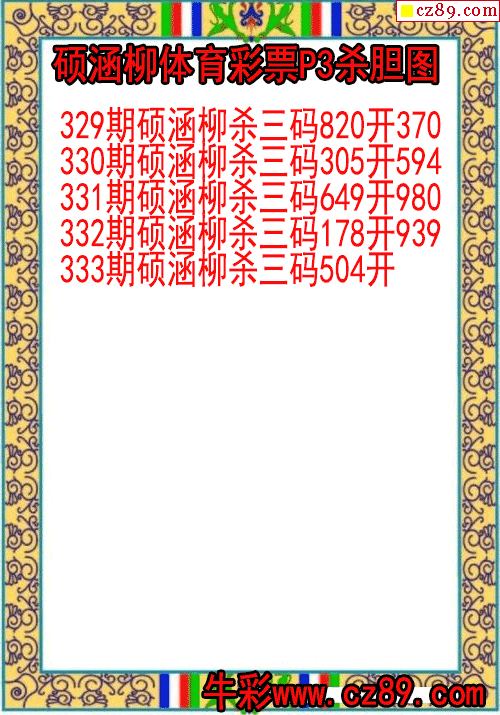 2025年333期牛彩网体彩P3画迷图谜汇总分享