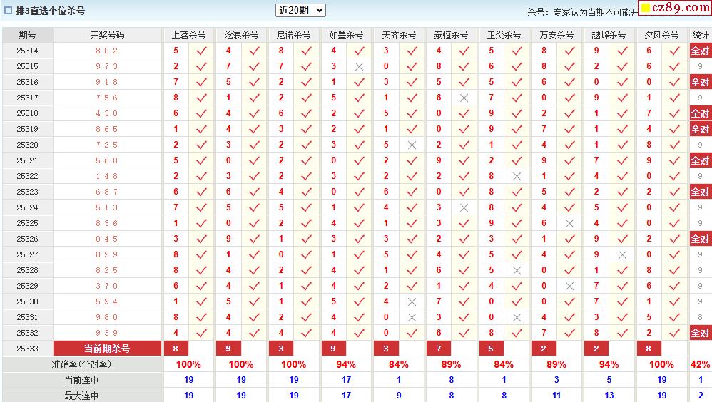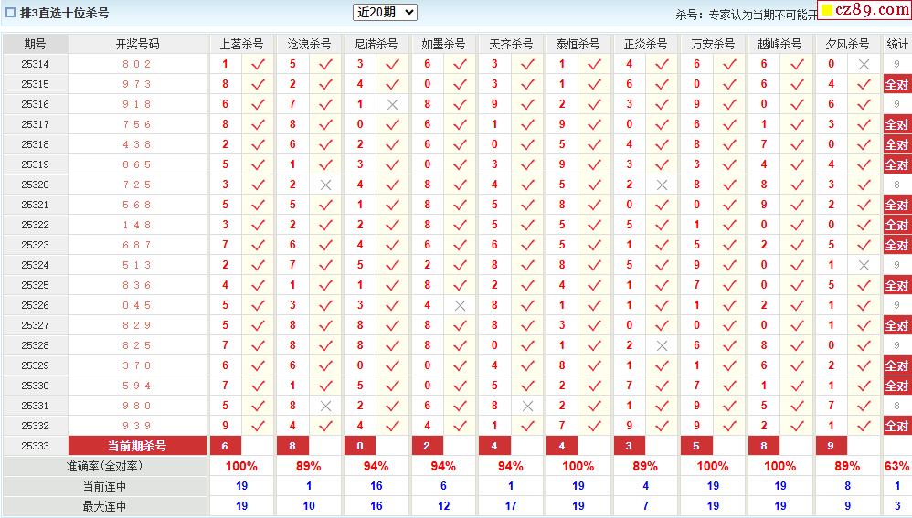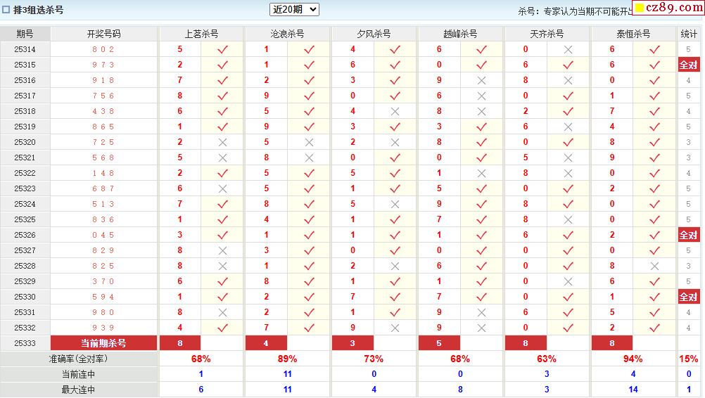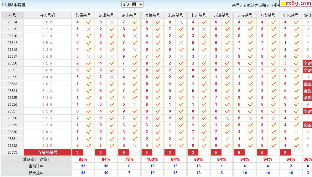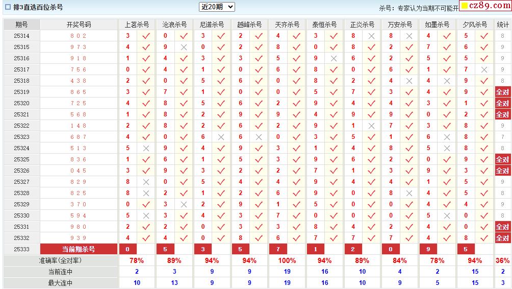 25年333期彩宝贝专家体彩P3杀号定码图表