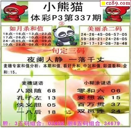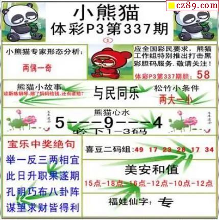 小熊猫2025337期体彩P3图谜