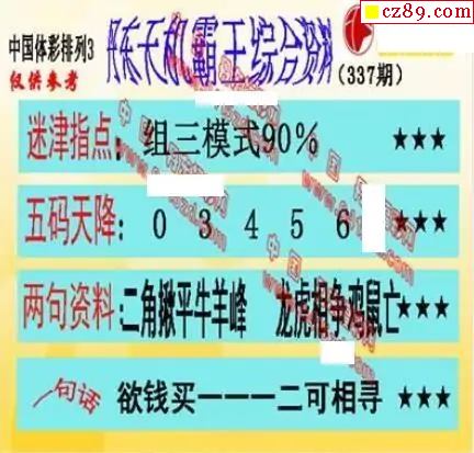 体彩P32025年337期 天庚大帝图谜