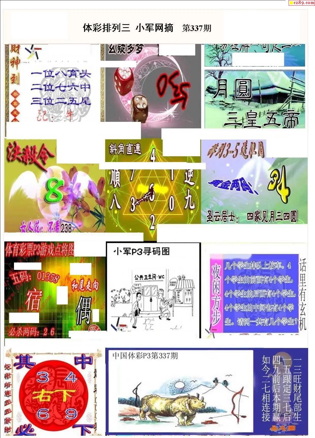 2025年337期牛彩网体彩P3画迷图谜汇总分享