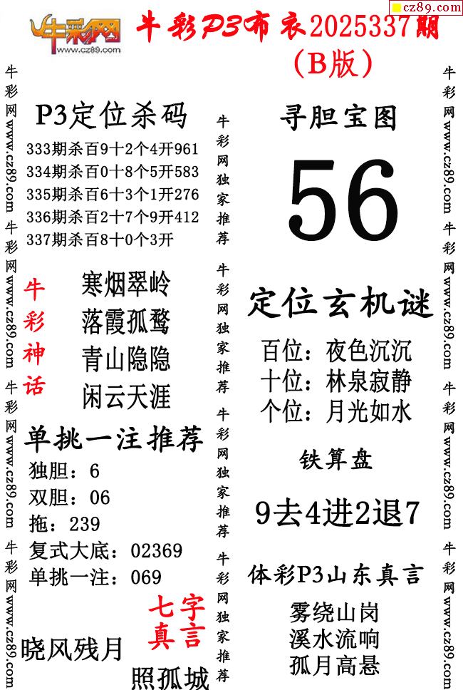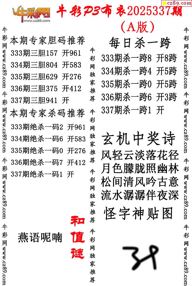 牛彩P3布衣25年337期AB版图谜(精华版)