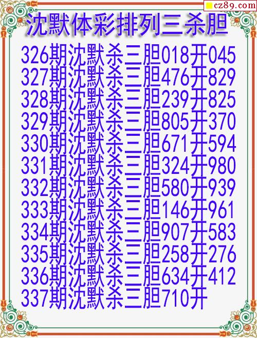 25年337期沈默体彩排列三杀胆图迷