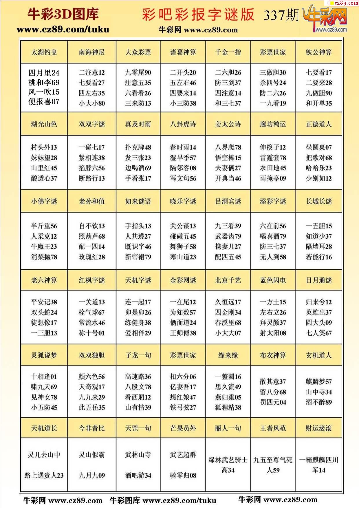 牛彩版3D字谜彩报图25年337期打印版