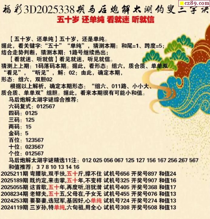 马后炮解25年338期3d太湖钓叟之 听就信