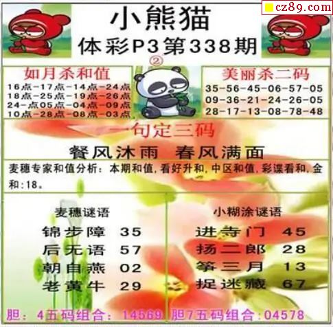 小熊猫2025338期体彩P3图谜