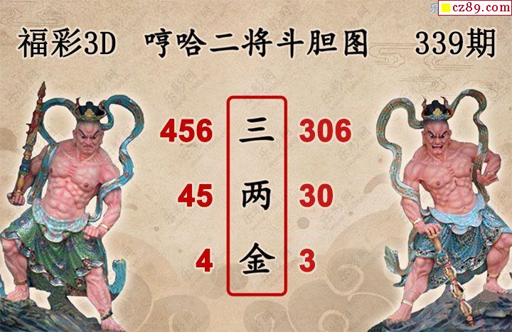 福彩3D2025339期 白鱼舟3D图谜哼哈二将斗胆图