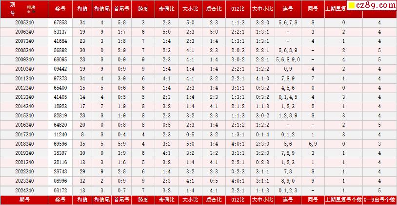 第340期体彩P5历史同期对比