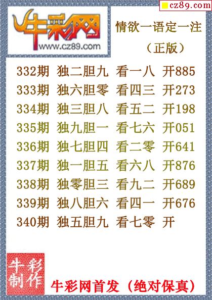 25年340期牛彩网福彩3D字谜汇总大全【晚间版】