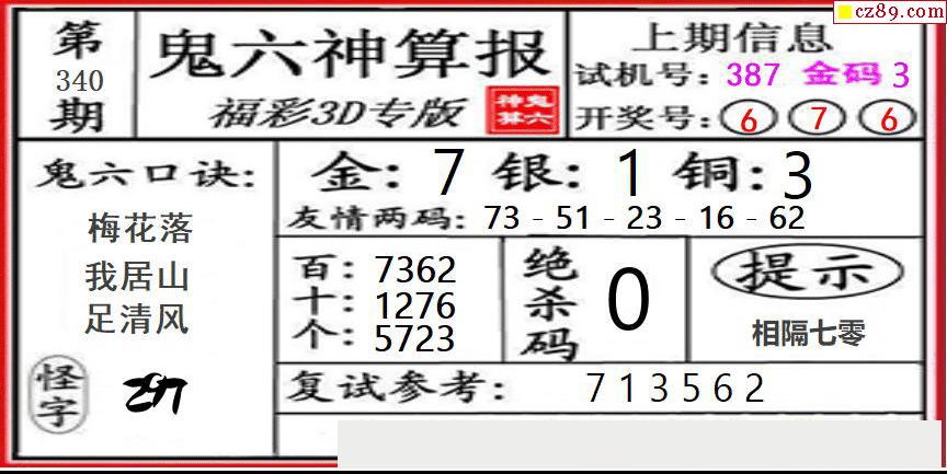 鬼六神算2025340期3d图谜