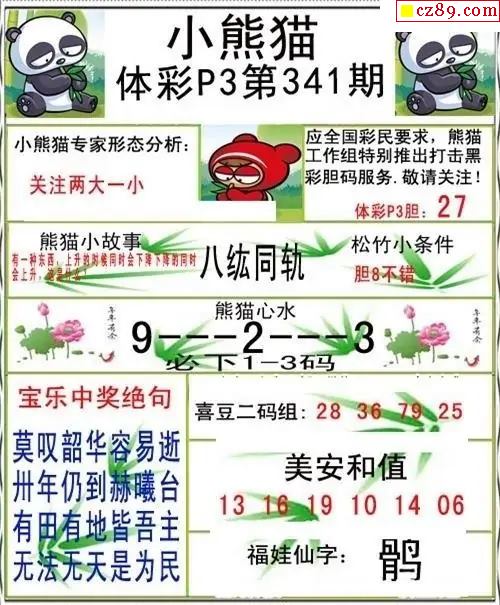 小熊猫2025341期体彩P3图谜