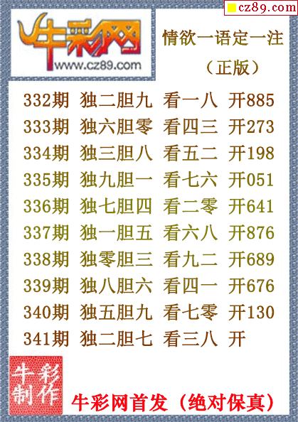 25年341期牛彩网福彩3D字谜汇总大全【晚间版】
