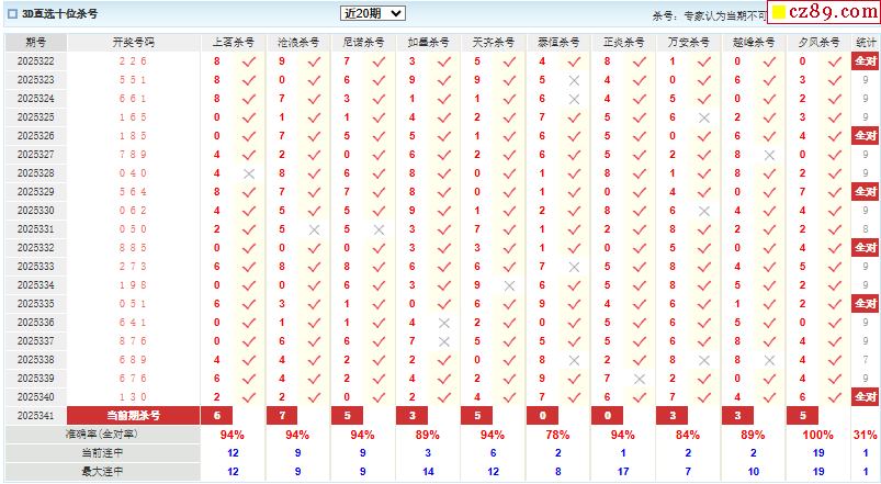 2025年福彩3D341期 冷热码分布详解与杀号参考