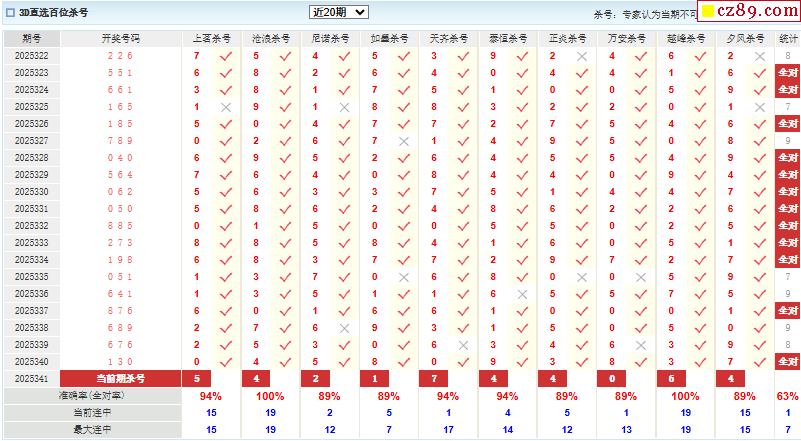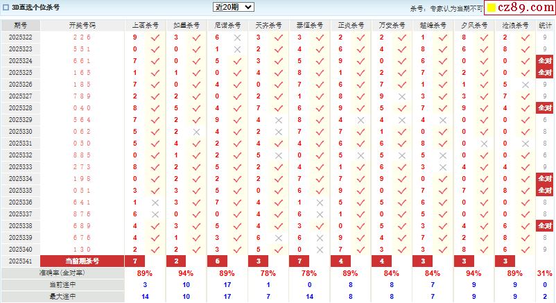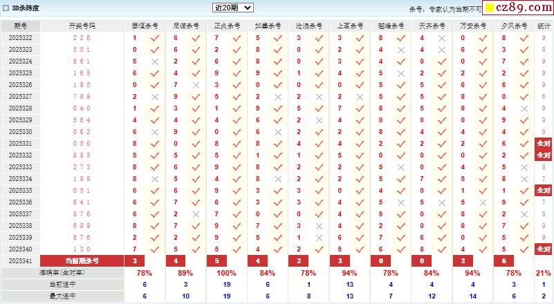 25年341期彩宝贝专家福彩3D杀号定码图表