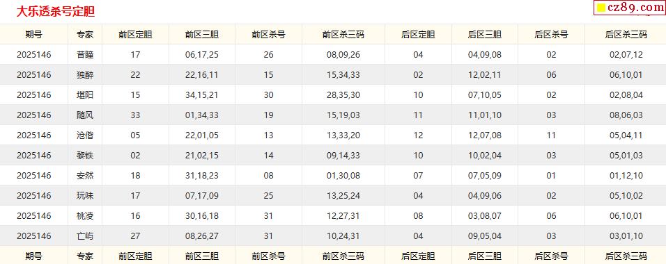 2025年146期牛彩版大乐透专家预测总汇分享