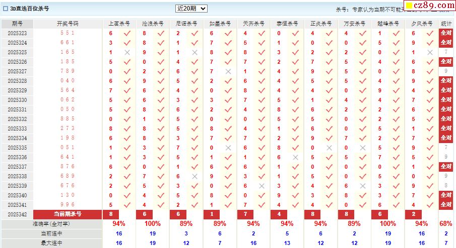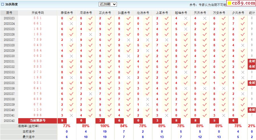 25年342期彩宝贝专家福彩3D杀号定码图表