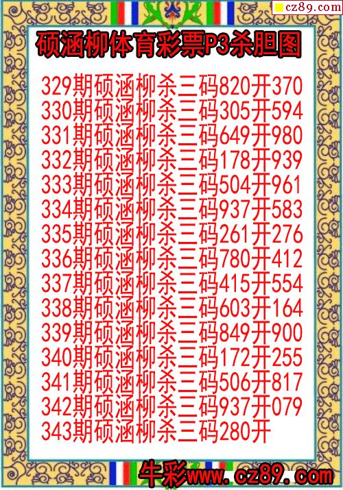 2025年343期牛彩网体彩P3画迷图谜汇总分享