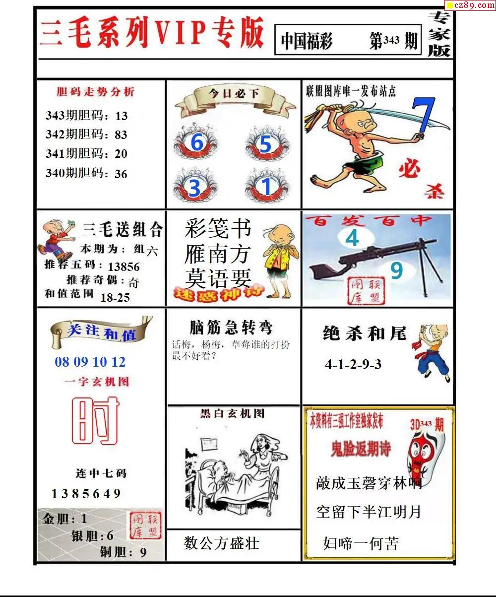 杀手+鑫马快报+字迷汇总25年343期3d图谜