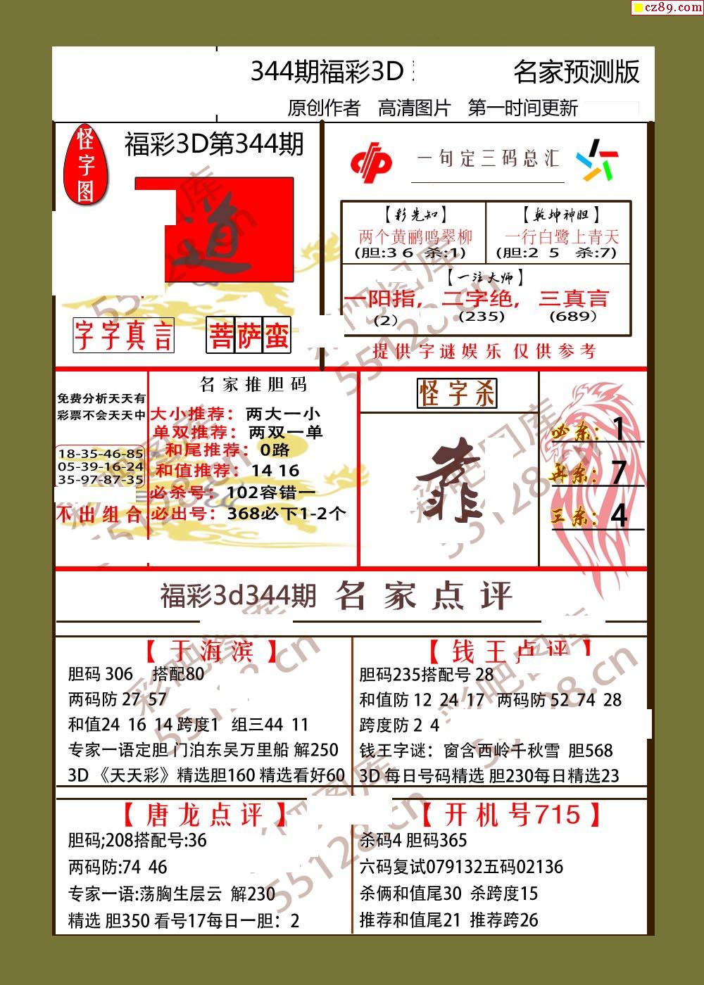 福彩3d25年344期山中密语彩报