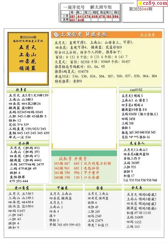 福彩3D2025344期 祁连牧哥百财纳福胆码图谜推荐