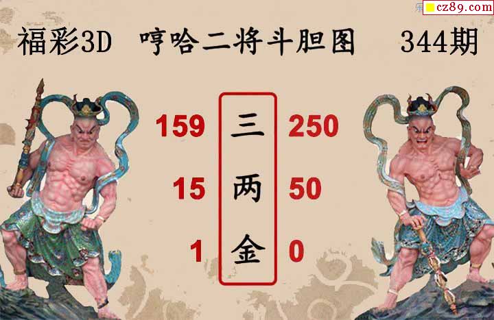 福彩3D2025344期 白鱼舟3D图谜哼哈二将斗胆图