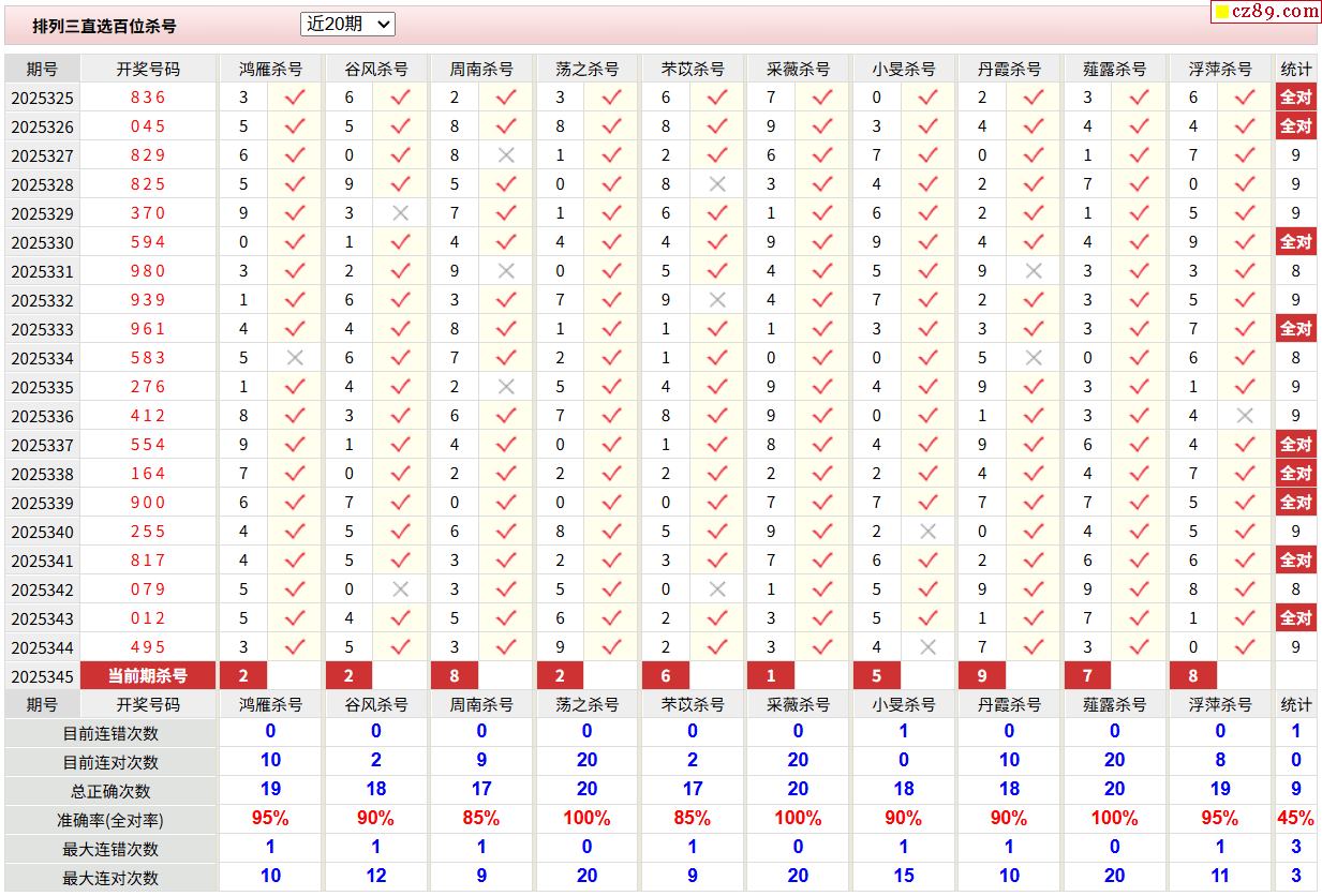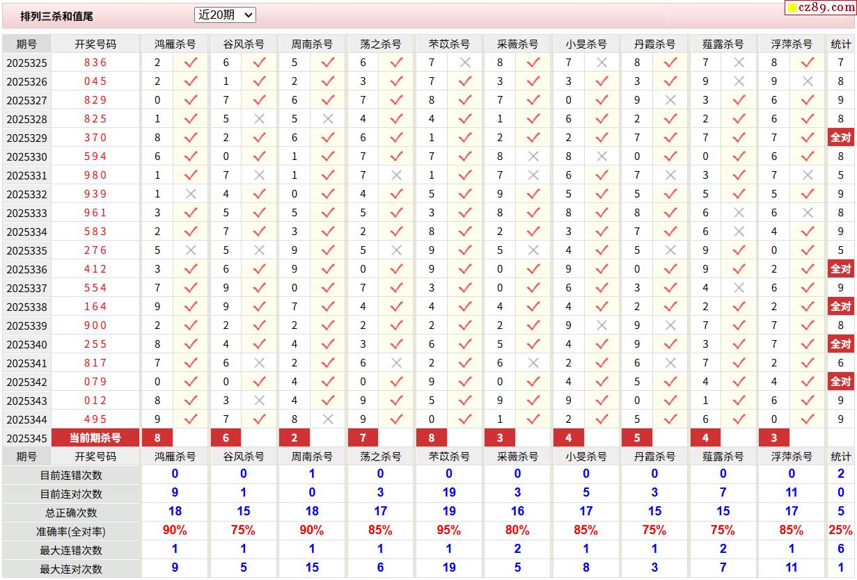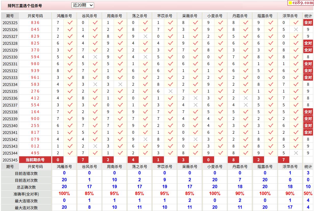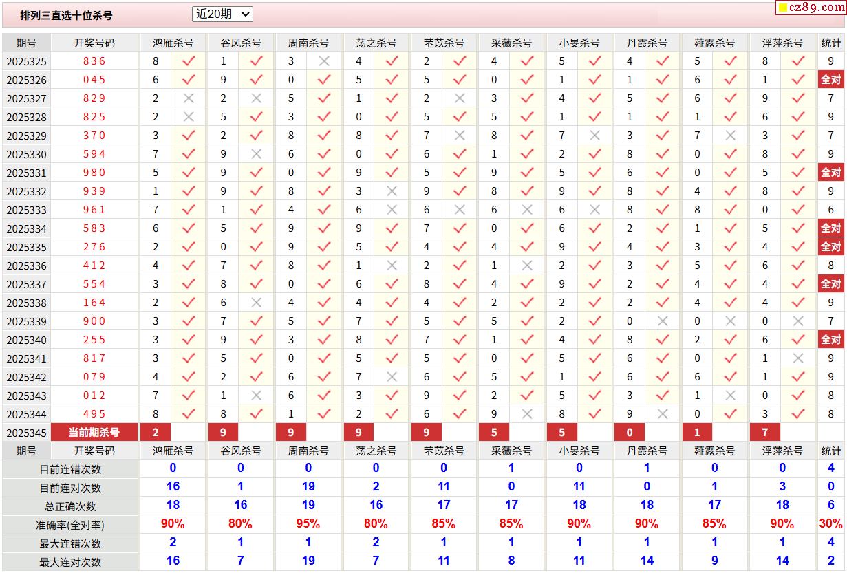 25年345期彩宝贝专家体彩P3杀号定码图表