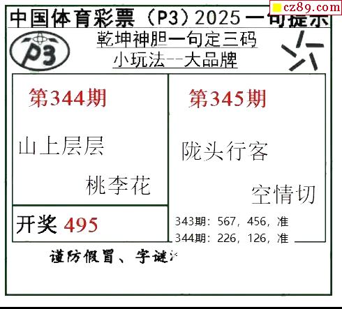 2025年345期牛彩网体彩P3画迷图谜汇总分享