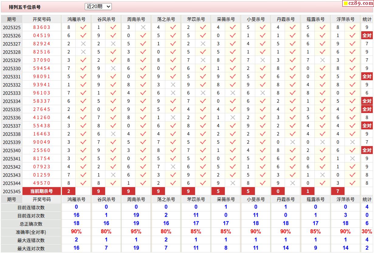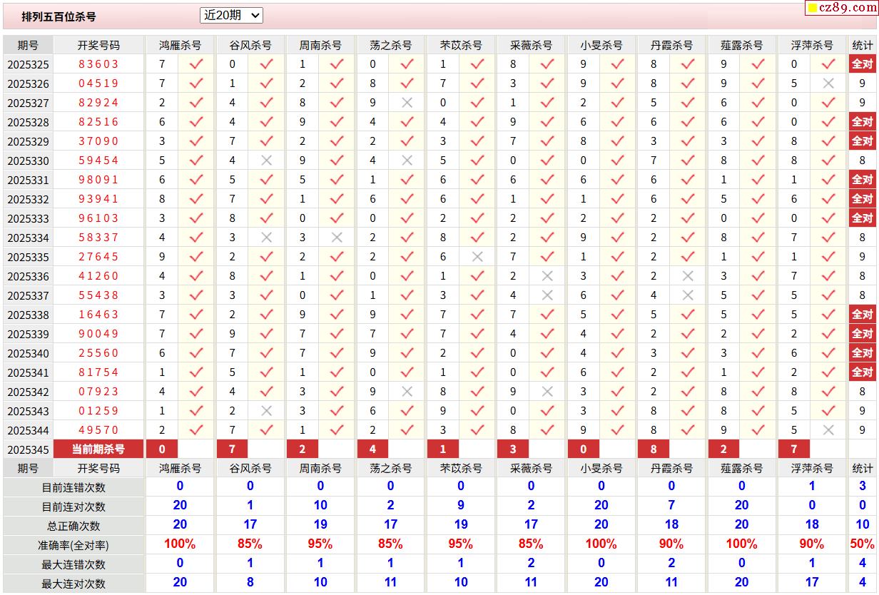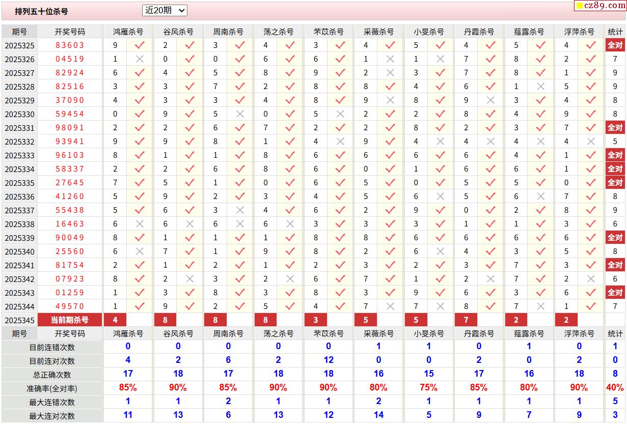 25年345期彩宝贝专家体彩P3杀号定码图表