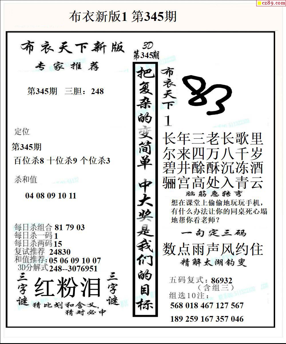 神舟25345期3d图谜总汇牛彩网采摘收集