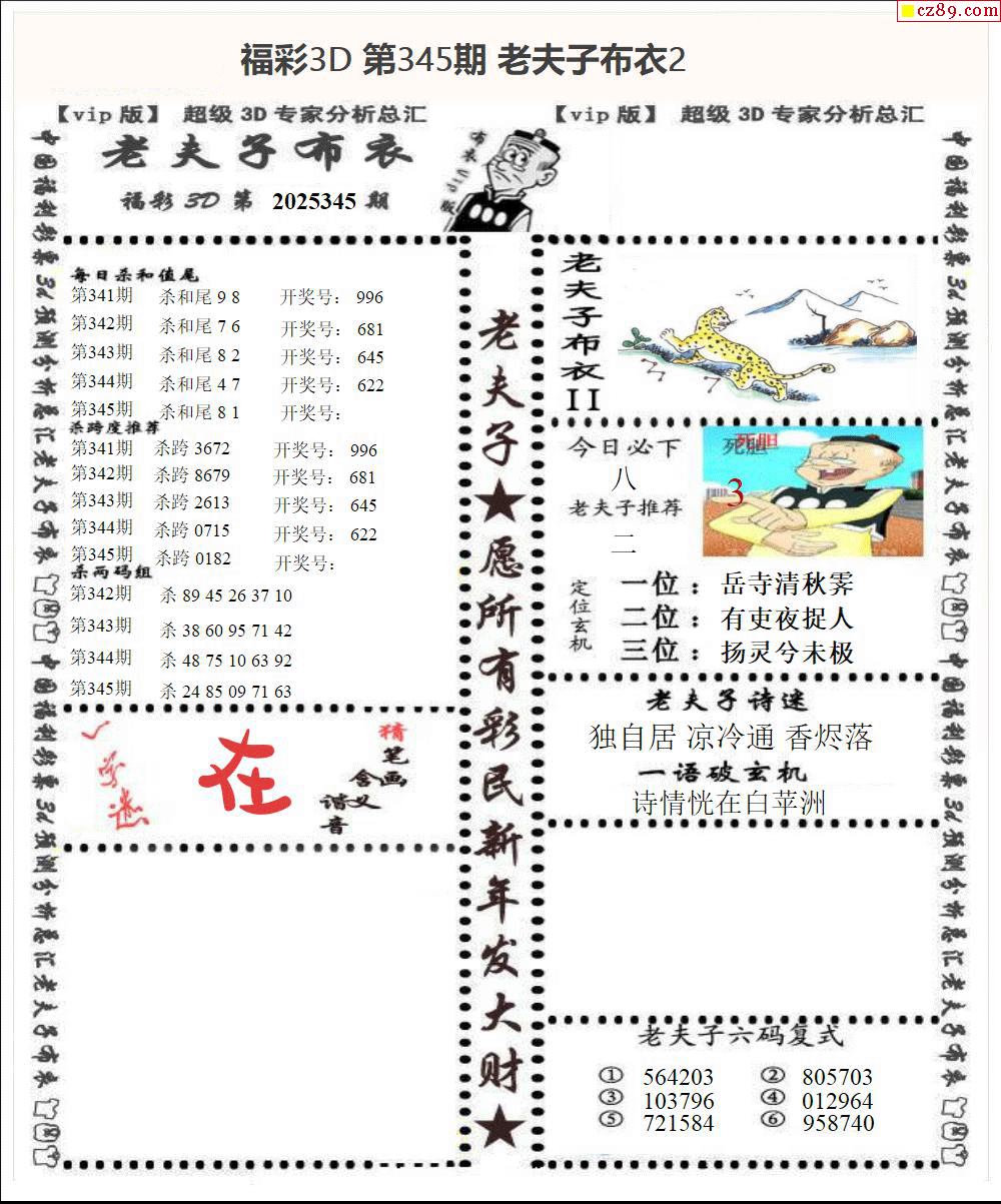 老夫子布衣2025345期3d图谜