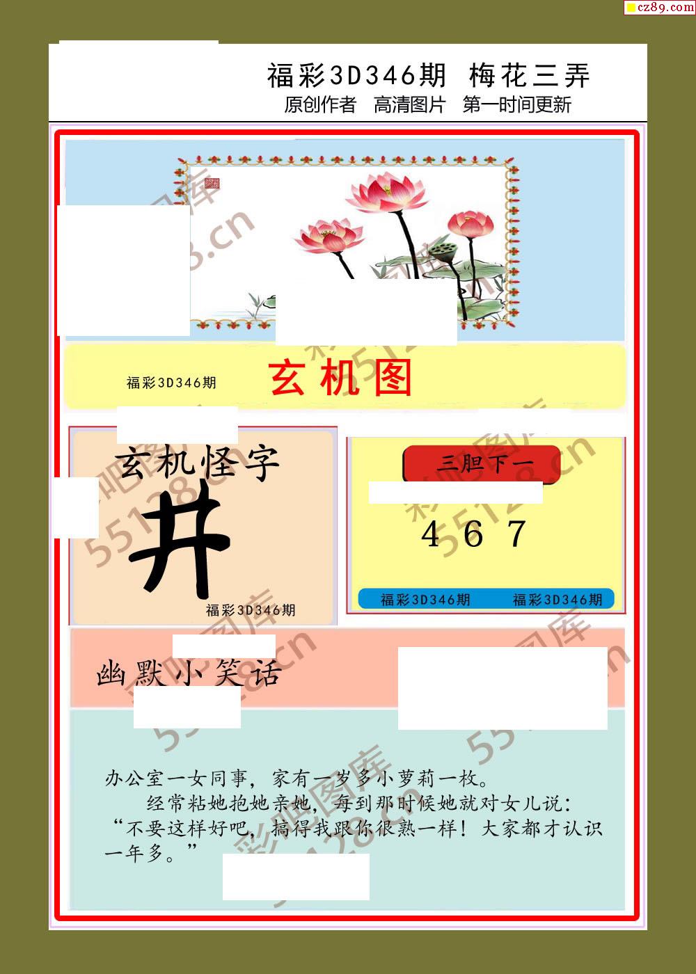 梅花三弄25年346期福彩3d图谜