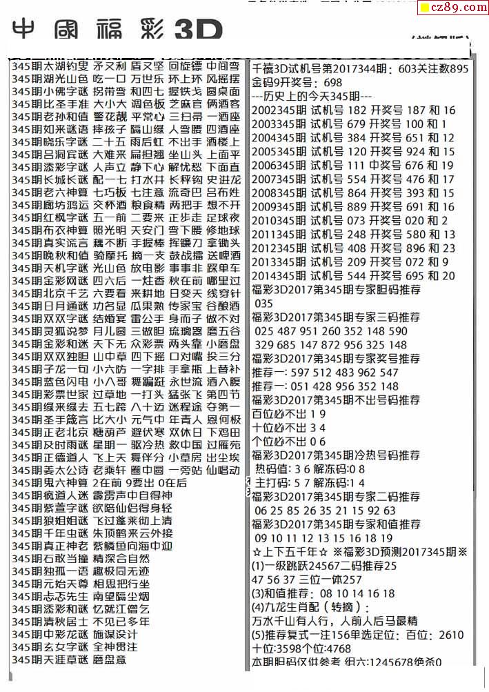 杀手+鑫马快报+字迷汇总25年345期3d图谜