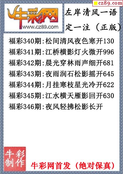 3d字迷总汇2025年346期牛彩版福彩3D今日...