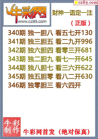 3d字迷总汇2025年346期牛彩版福彩3D今日...