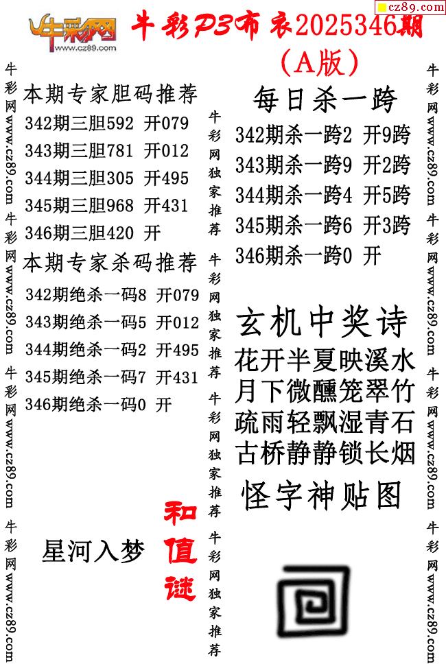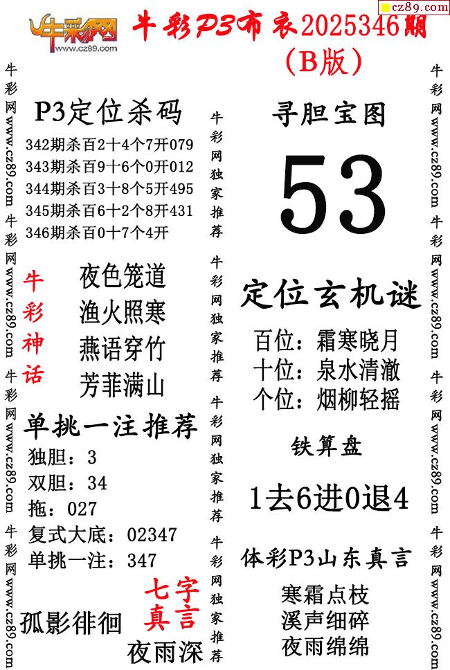 牛彩P3布衣25年346期AB版图谜(精华版)