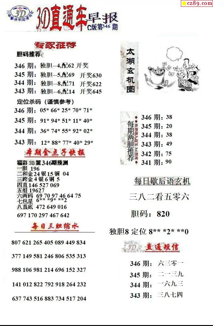 杀手+鑫马快报+字迷汇总25年346期3d图谜