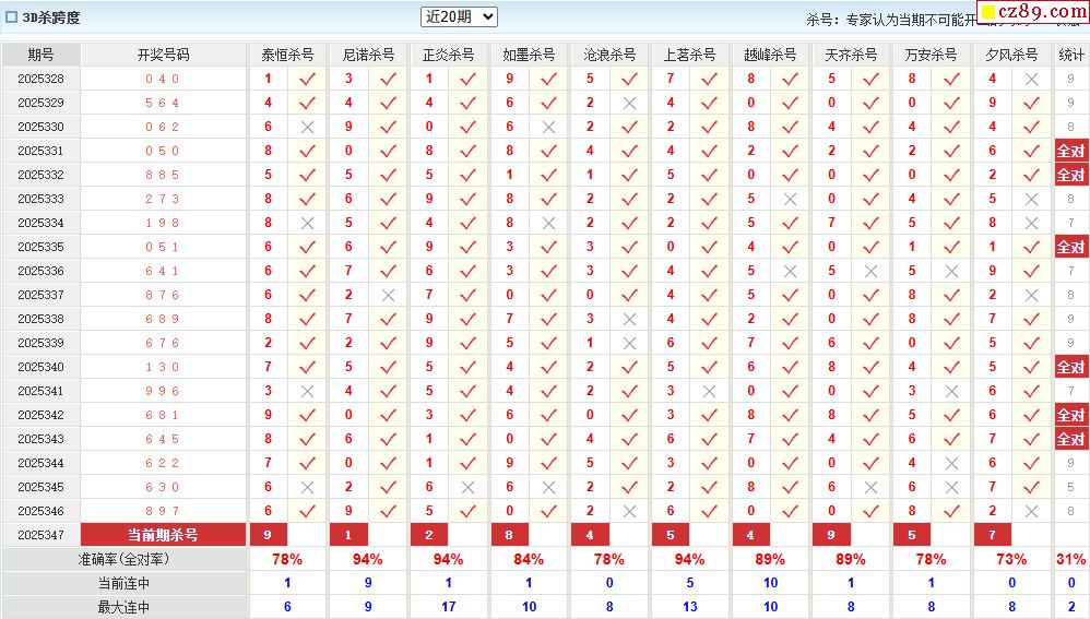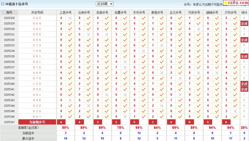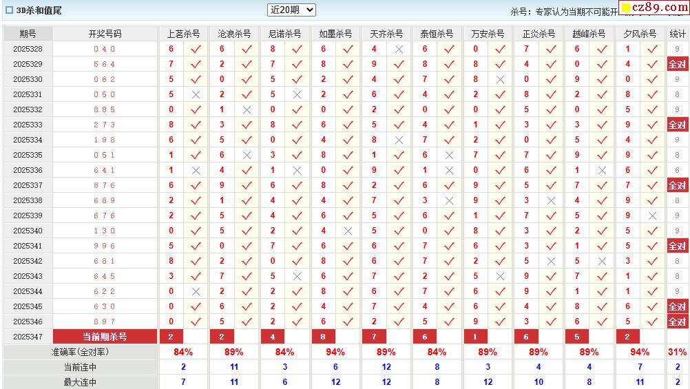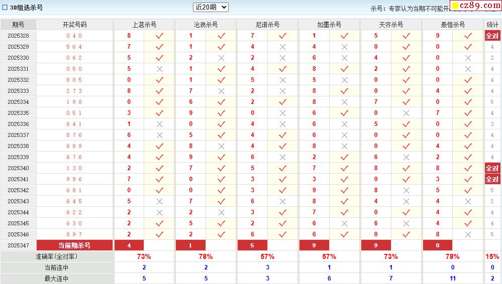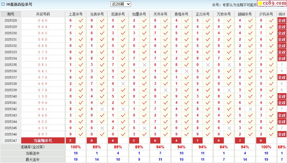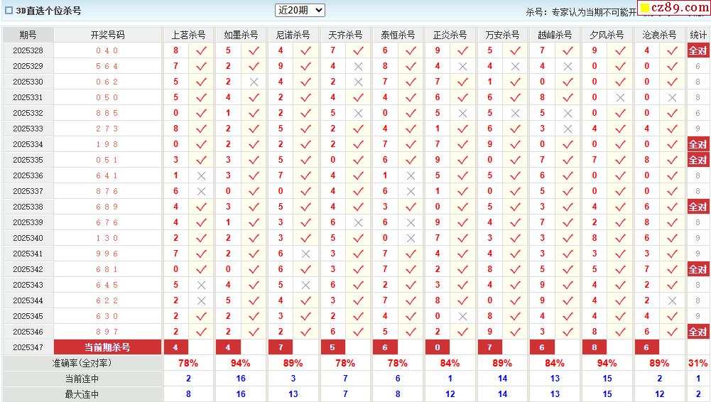 25年347期彩宝贝专家福彩3D杀号定码图表