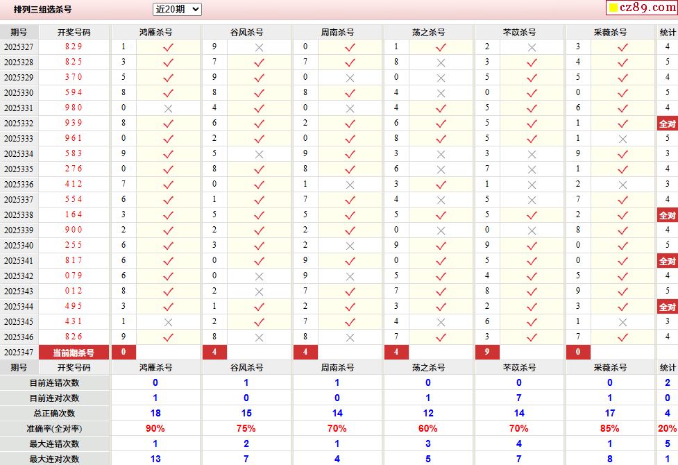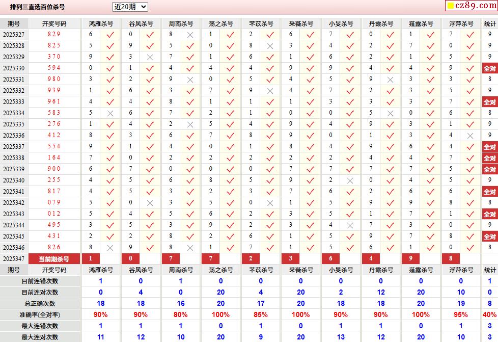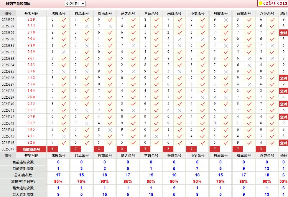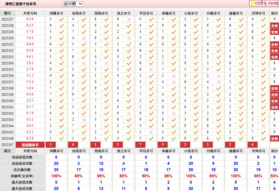 25年347期彩宝贝专家体彩P3杀号定码图表