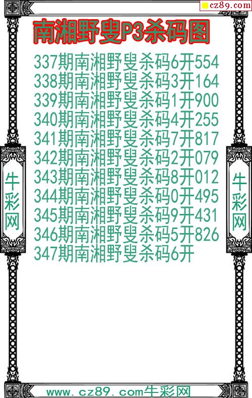 25年347期墨龙体彩排列3杀码图