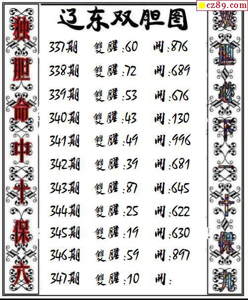 辽东双胆2025347期3d图谜
