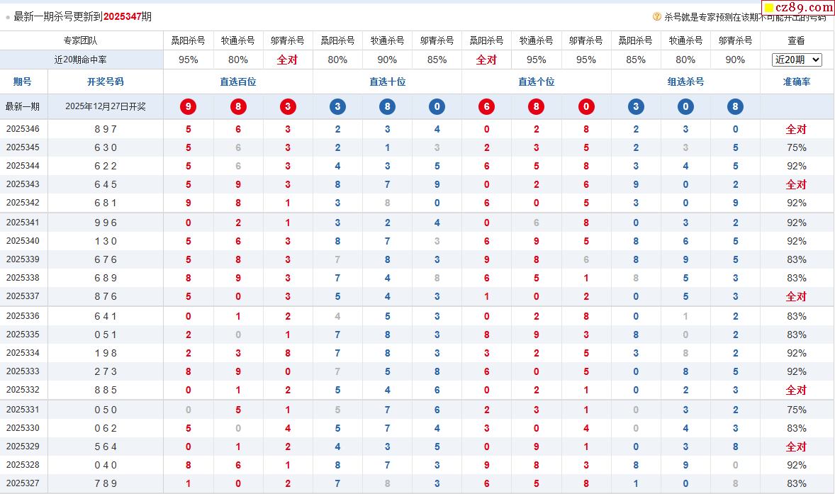 25年347期彩宝贝专家福彩3D杀号定码图表