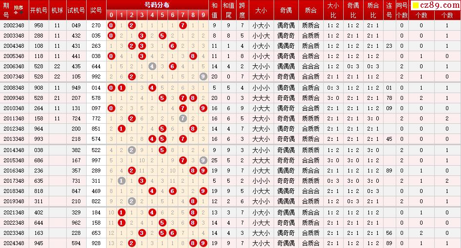 第348期福彩3D历史同期对比