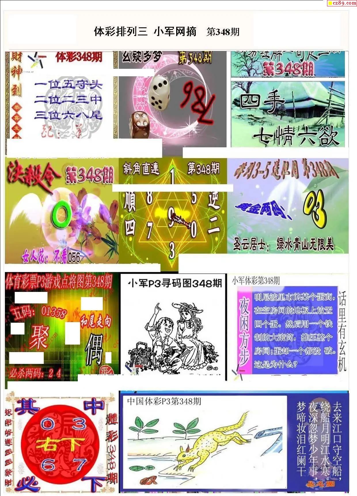 2025年348期牛彩网体彩P3画迷图谜汇总分享