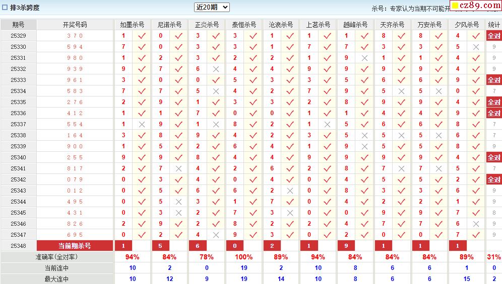 25年348期彩宝贝专家体彩P3杀号定码图表